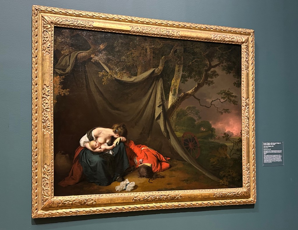 People who saw English artist Joseph Wright’s The Dead Soldier on exhibit…were moved to tears. Wright’s painting reflects how the British struggled to cope with the wartime violence of the late 1700s, particularly in the wake of the American Revolutionary War. Thousands of British husbands, sons, and fathers suffered wounds or death for their nation. Wives became widows. Children became orphans. The Dead Soldier visualizes the personal cost of war and revolution.