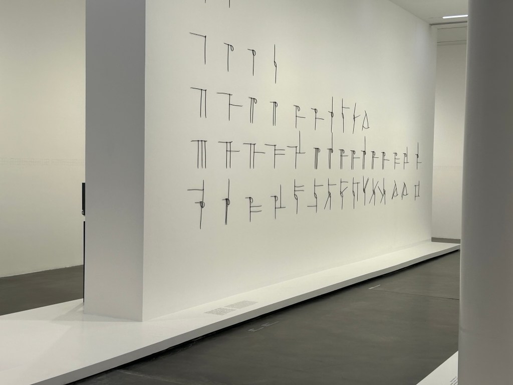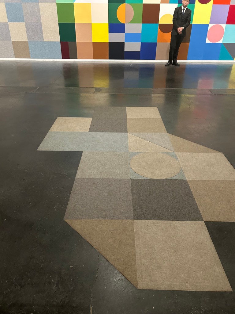 Factory No. 4 pivots us from the portraits to the actual gallery space, which is a former factory. And it circles us back to the colourful site-specific mural on the gallery wall and floors with which we began this exploration. It is titled Unknown. There’s no Chinese title that would help unpack the English one. The curator points out that the work renders a portrait photograph of famous Bauhaus male designers (so, human figure and abstraction woven together, once again). What is unknown could be the women not pictured in the photograph. But the work also “pays tribute to the colour theory proposed by Josef and Anni Albers which posits that the relationship between colours and space can impact perception.” So equally, the unknown could refer to how we perceive (or fail to perceive) the way that the colours of the artwork enter our own space (not just the wall of colour; we stand on felt, and most of the visitors in the gallery do not seem to notice it against the dull gallery floor). What we do not see nonetheless connects us to greater things, like the space of history.