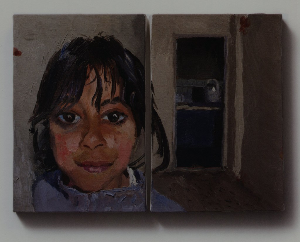 One canvas is the deep colour of the sea in the sky; the other, the pale colour of dusty heat. These are not figural pictures, and neither are they entirely abstract. They fit uneasily in the oil painter Liu Xiao-dong’s 刘小东 series of diptychs of people and places in Palestine and Israel, painted more than ten years ago. They mark a caesura between pictures of soldiers and children, the wall of the West Bank checkpoint and the Wailing Wall, a table loaded with food around which an Israeli party celebrates and a circle of idle Palestinian men with legs stretched out, radiating boredom. They point towards geography and space (the Mediterranean, the El-Bariyah Desert). The suggestion of the cadence of the waves breaking on a shore versus the stillness of a desert further points towards time: the beat of time measured versus immeasurable infinity.