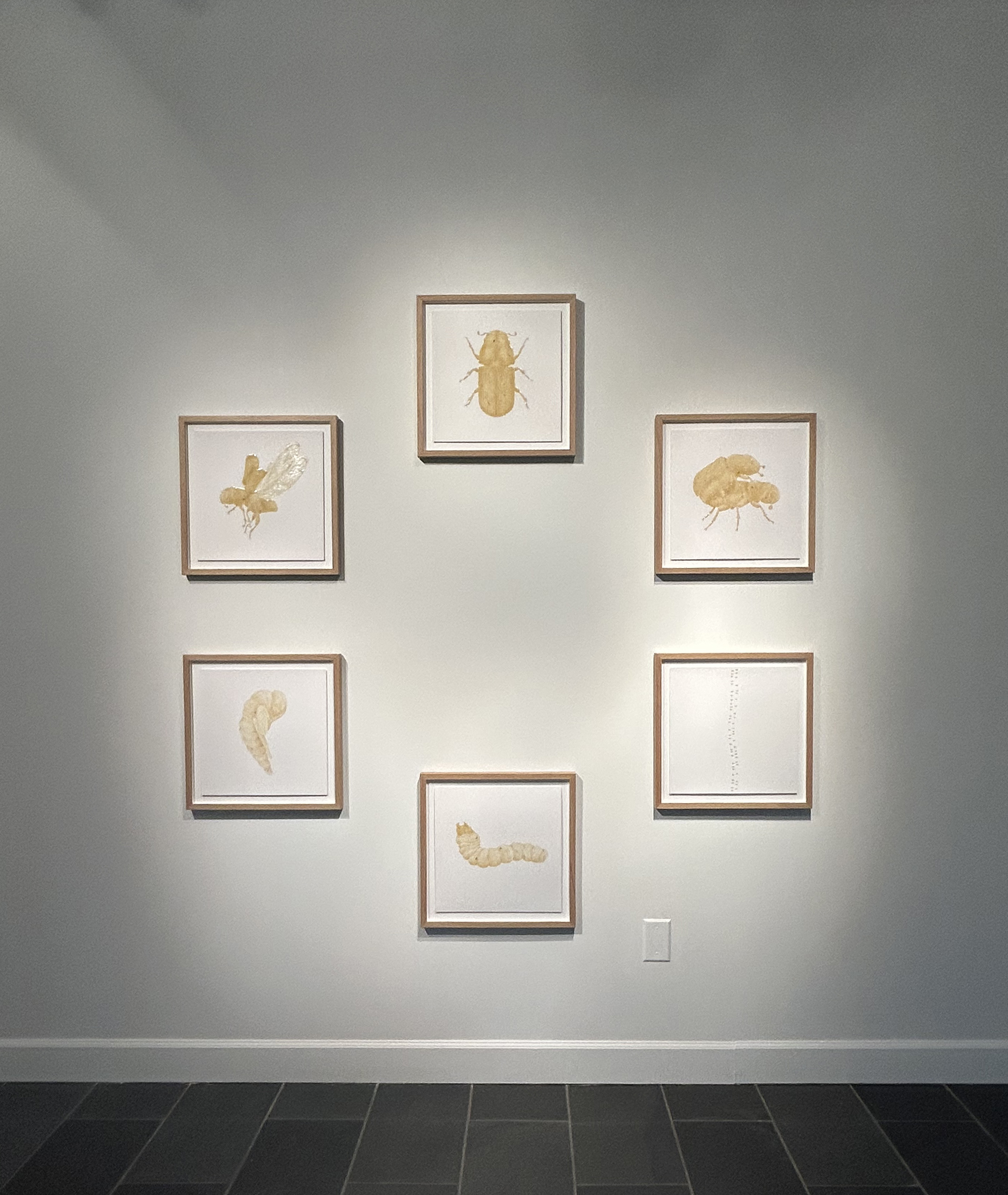 Mountain Pine Beetle Lifecycle series, 2025. Tree resin on paper; 16 x 16 in.