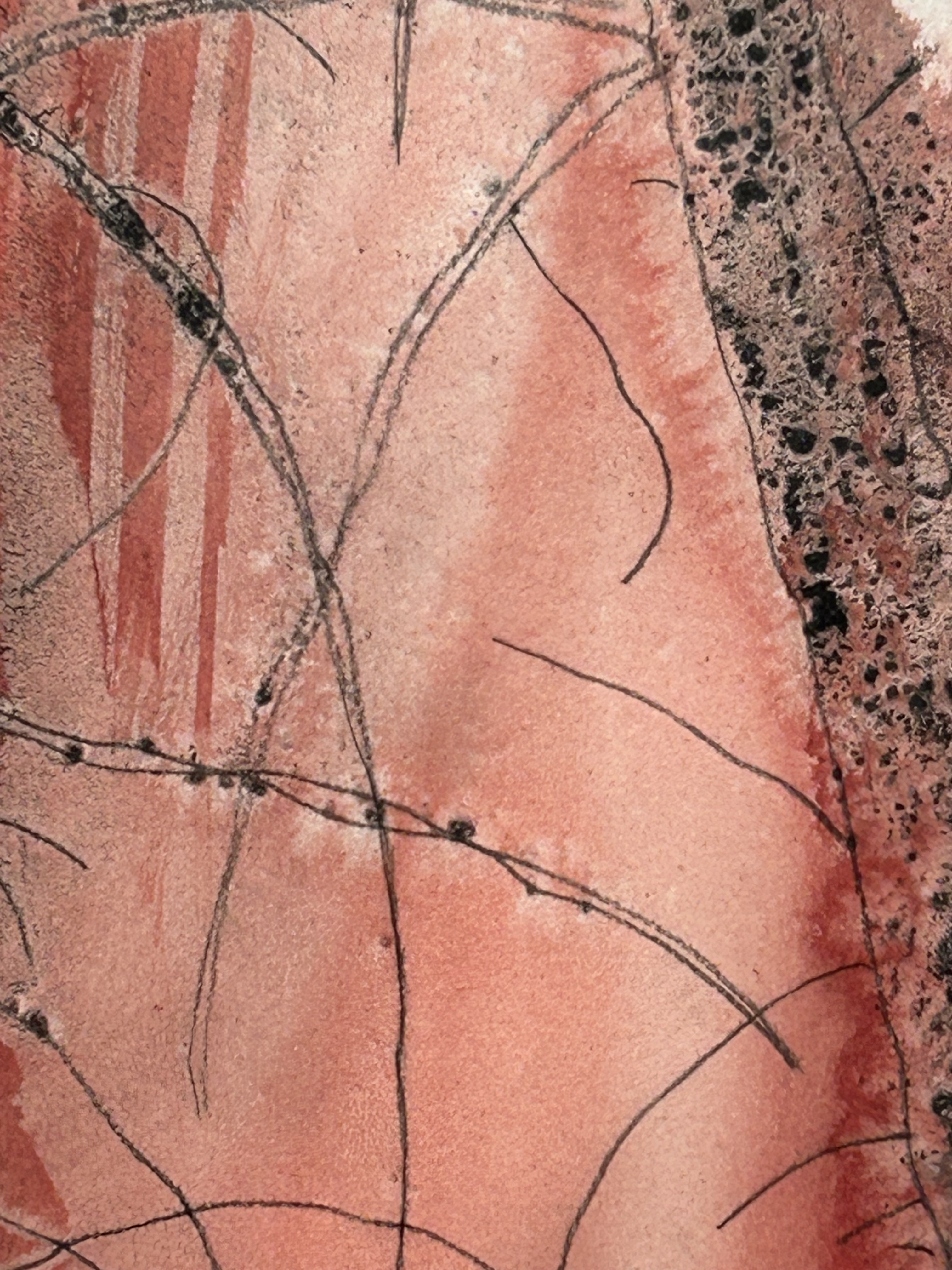 Beaver Creek Fire 2013 from the Fire Watercolours series, 2025. Charcoal and watercolour on paper; 24 x 22 in.